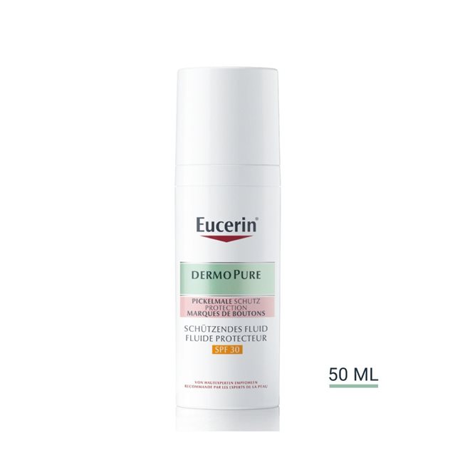 Darüber hinaus kann Sonnenexposition die Pickelmale verschlimmern, daher empfehlen wir Sonnenschutz. Begrenzen Sie die Zeit, die Sie in der Sonne verbringen, und meiden Sie die Sonne während der intensivsten Stunden. Tragen Sie nach Möglichkeit Kleidung und Sonnenhüte. Tragen Sie einen Lichtschutzfaktor von mindestens 30 auf, um Pickelmale vor dem Nachdunkeln zu schützen und neue Flecken zu vermeiden, wie zum Beispiel das spezielle Hautpflegeprodukt von Eucerin DERMOPURE Schützendes Fluid LSF 30.