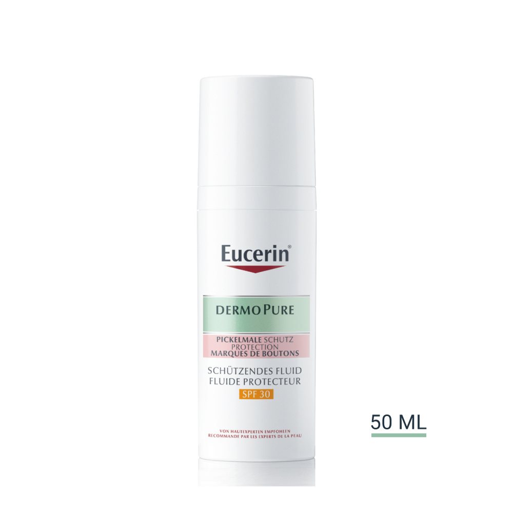 Was macht das DERMOPURE Schützende Fluid LSF 30 so wirksam bei zu Unreinheiten neigende Haut mit Pickelmalen?