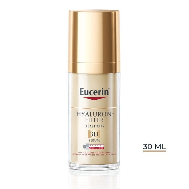 Eucerin Hyaluron-Filler + Elasticity 3D Serum mildert effektiv Altersflecken, füllt tiefe Falten sichtbar auf und verbessert die Elastizität. Die Haut wirkt ebenmässiger und ist straffer.