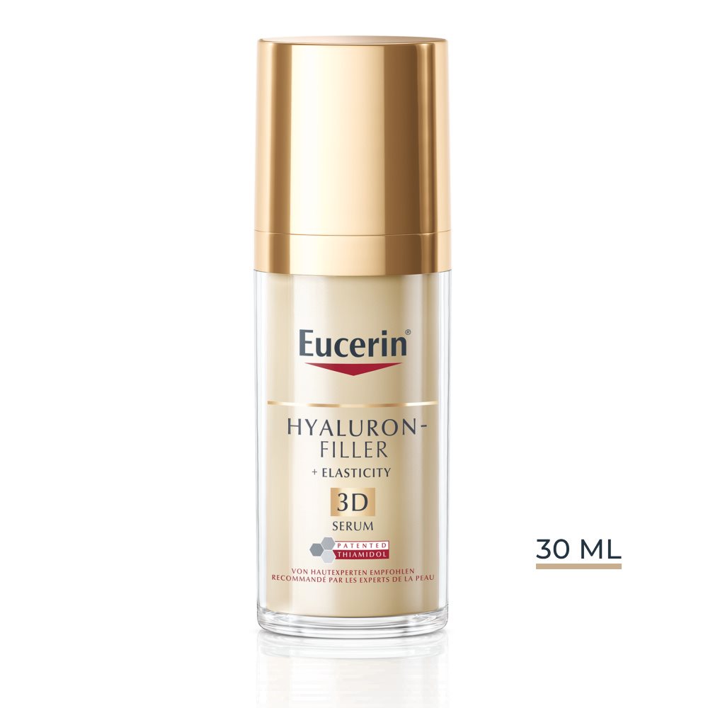 Das von dermatologischen Behandlungen inspirierte Eucerin Hyaluron-Filler + Elasticity 3D Serum ist ein leichtes und feuchtigkeitsspendendes Anti-Age-Serum, das die 3 Dimensionen der Hautalterung effektiv behandelt: