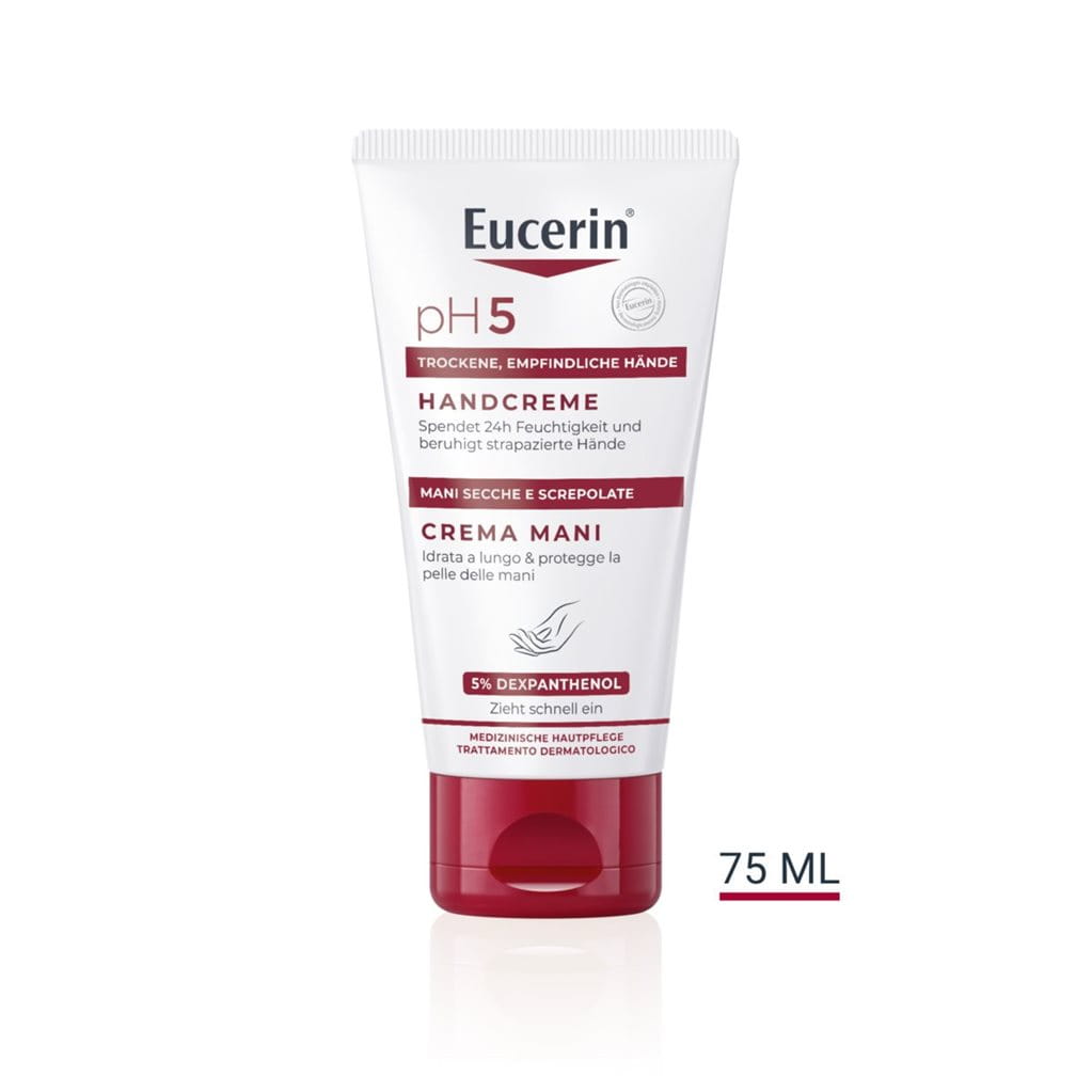 Eucerin pH5 Handcreme spendet langanhaltende Feuchtigkeit, stellt die natürlichen Abwehrkräfte der Haut wieder her und macht sie glatt und geschützt.