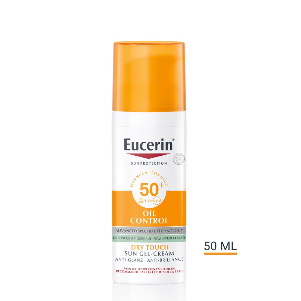 Eucerin Sun Gel-Creme Oil Control LSF 50+ ist ein ultraleichter Sonnenschutzgel für den täglichen Gebrauch mit sehr hohem Lichtschutzfaktor, die speziell für fettige und zu Unreinheiten neigende Gesichtshaut entwickelt wurde. Sie verbindet einen hervorragenden Lichtschutz gegen durch Sonneneinwirkung hervorgerufene Schädigungen der Haut mit einer aktiven Lösung zur Verbesserung des fettigen Hautzustandes.