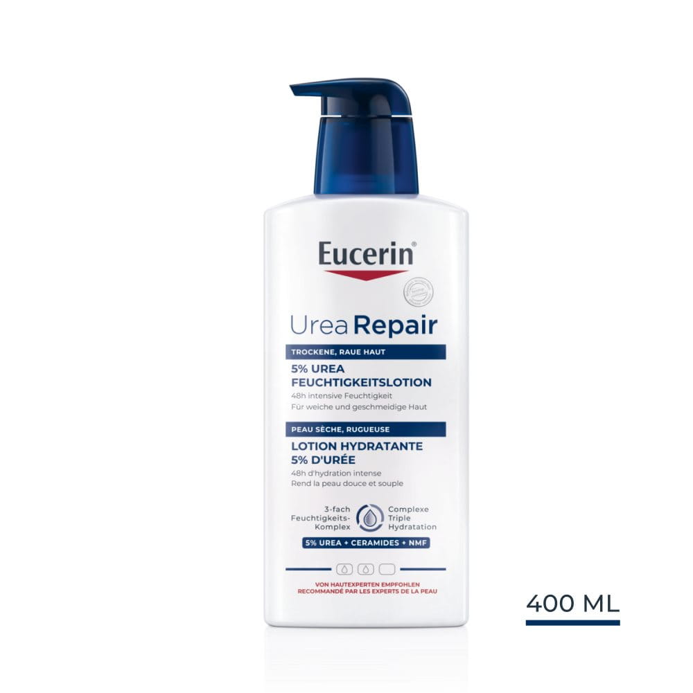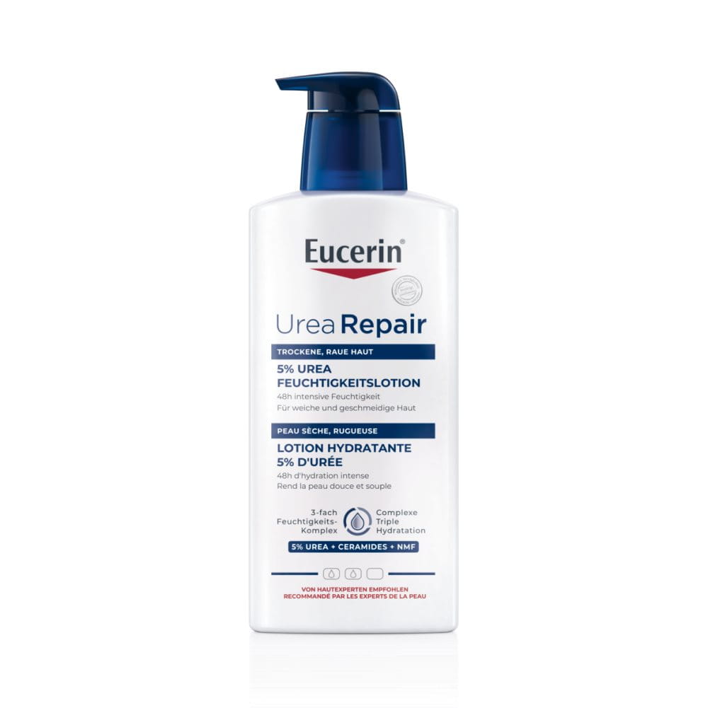 Die Eucerin UreaRepair PLUS Lotion 5% ist eine Öl-in-Wasser-Lotion, die 5 % Urea enthält und speziell für raue oder spannende trockene Haut entwickelt wurde. Die Eucerin UreaRepair PLUS Lotion 10% ist dagegen eine Wasser-in-Öl-Lotion mit 10 % Urea und speziell gedacht für die Anwendung bei extrem trockener und schuppige Haut. Bei leichteren Symptomen sollten Sie daher zur Eucerin UreaRepair PLUS Lotion 5% greifen, bei schwereren Symptomen zur Eucerin UreaRepair PLUS Lotion 10%.