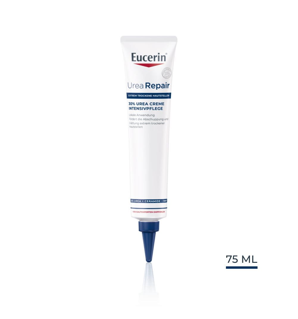 Wir empfehlen die Eucerin UreaRepair PLUS 30% Urea Creme ein oder zweimal täglich aufzutragen.